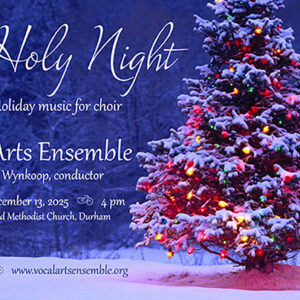 Vocal Arts Ensemble: O Holy Night: Darkness into Light This holiday season, the 36 voices of the Vocal Arts ... 13 Dec 4:00 pm Trinity United Methodist Church215 N Church St, Durham, NC
