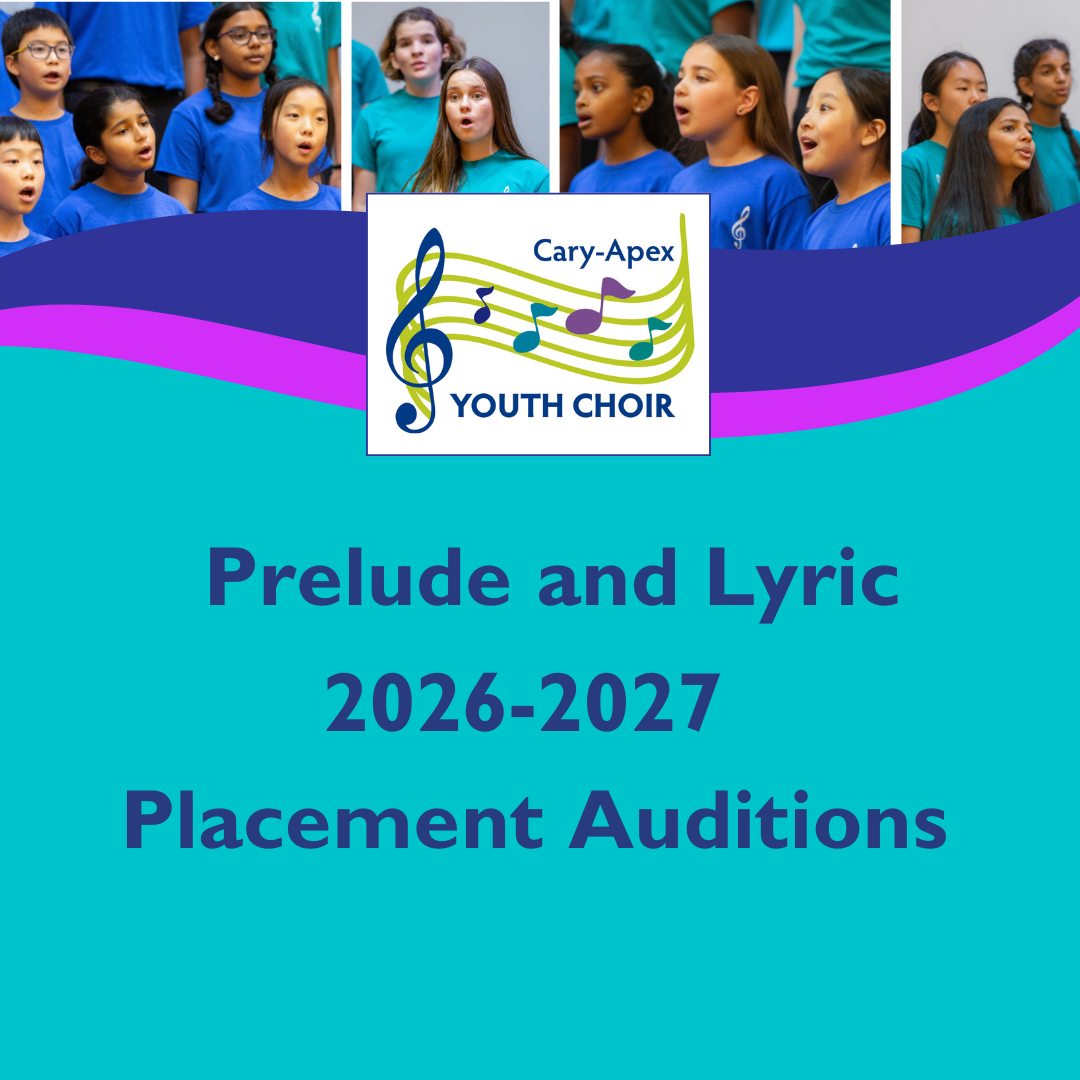 Prelude Choir and Lyric Choir placement auditions for the 2026-2027 season will be on