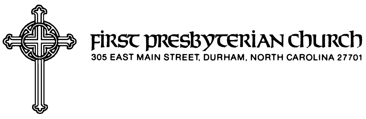 First Presbyterian Church, Durham (FPC), is a congregation of the Presbyterian Church (USA). Established in 1871, it is “downtown by history and by choice” and its ministry is grounded in inclusivity, faith exploration, pastoral care, community, faithful stewardship, and social mission. FPC honors and celebrates the human diversity and unity that God gives us in Christ by welcoming individuals of every age, race, nationality, gender, ability, sexual orientation, and economic circumstance to participate fully in the life of the church.